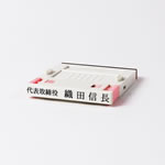 作成内容に合わせて商品をお選びください。幅62mmタイプが最も売れ筋の商品となっております。 通常は法人格は会社名より小さく、役職者名はお名前より小さく作成します。 有料の「デザイン作成・校正サービス」をご利用の場合は、弊社側の職人の判断にてそのように調整いたします。 文字の大きさに合わせて高さをご選択ください。 高さ8.5mmと10.5mmは1行(大きい文字)と2行(小さい文字)から選ぶことができます。 |