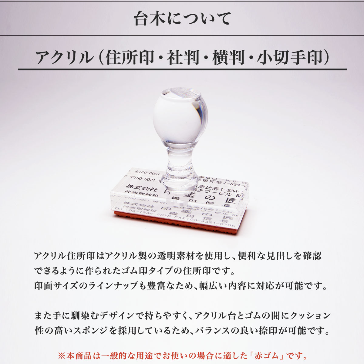 アクリル製の透明の本体をとおして見出しが見れるように作られています。捺印する際に使いやすく便利です。 *** |