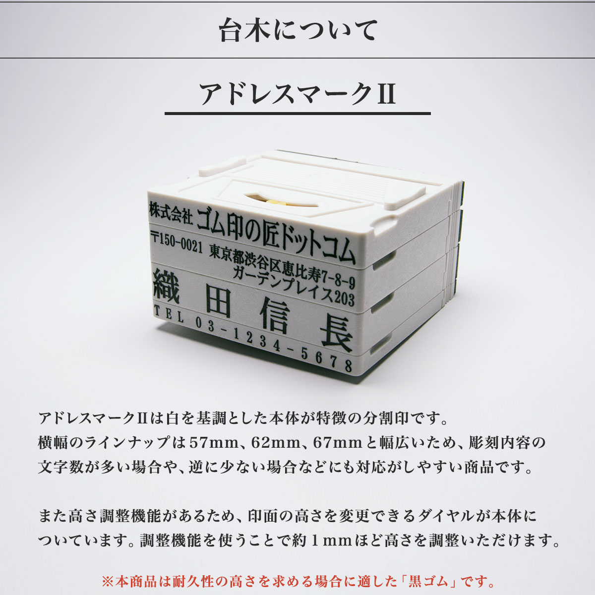 ゴム印/オリジナルスタンプ/データ入稿/アドレスマークII(黒ゴム)/分割印/親子判/67mm×8.5mm