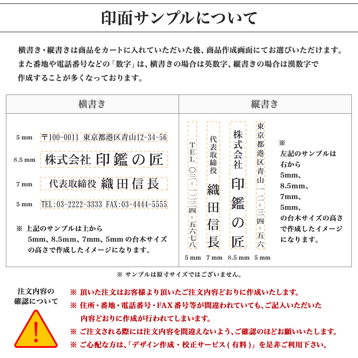 高さ8.5mm (1行)法人名・屋号・代表者名・役職者名等 (2行)住所・電話番号・FAX・URL等 |