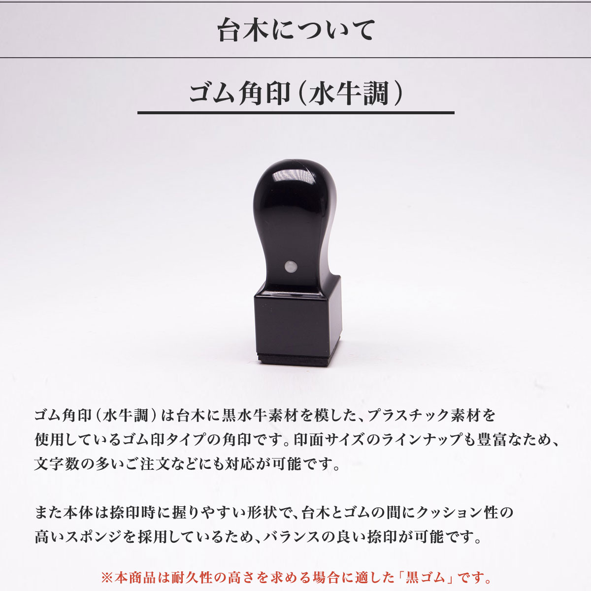 | 商品名称 | ゴム角印(水牛調/黒ゴム)8号/印面24mm |