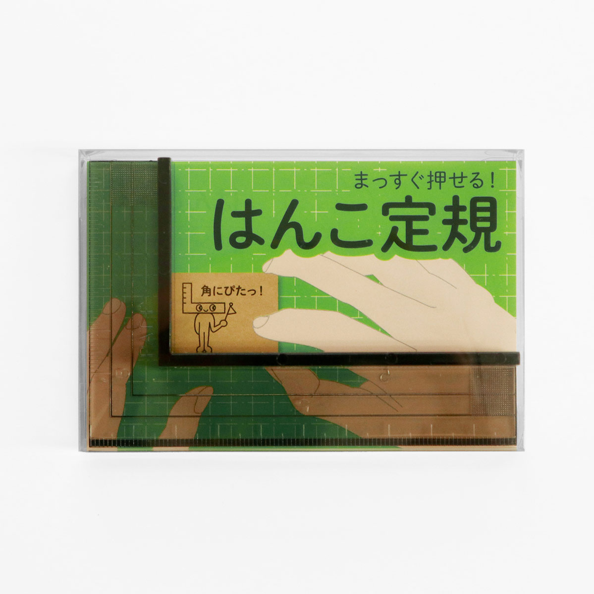 スタンプを定規に合わせて押すだけで、狙った場所にまっすぐ押すことができるはんこ・スタンプ補助アイテムです。会社印、会社事務での小切手や手形、封筒や個人でのはがき・年賀状など各種スタンプ、スケジュール帳・ノート・付箋にもおススメです。